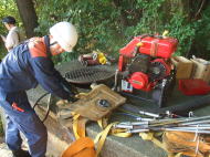 保存会会長から挨拶の後、作業に取りかかります。 『今年も美しい送り火にしましょう!』