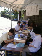 護摩木のほかにこちらの志納所では、テレフォンカードや絵葉書・扇子・ガイドブックなど五山送り火グッズも置いています。テレフォンカードは当日にはもう売り切れていました。 護摩木は15時まで受け付けています。