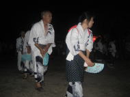 題目踊りのあとは、盆踊りのひとつでもあるさし踊りが行われました。さし踊りは一般の方も参加し、送り火の夜に、踊りの輪が広がっていました。